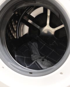今回はデザインアクセントと、内部に空間を作る為に外周部分を玉縁で仕上げた為、ミシンでは綺麗にステッチを